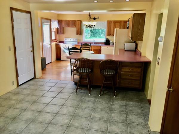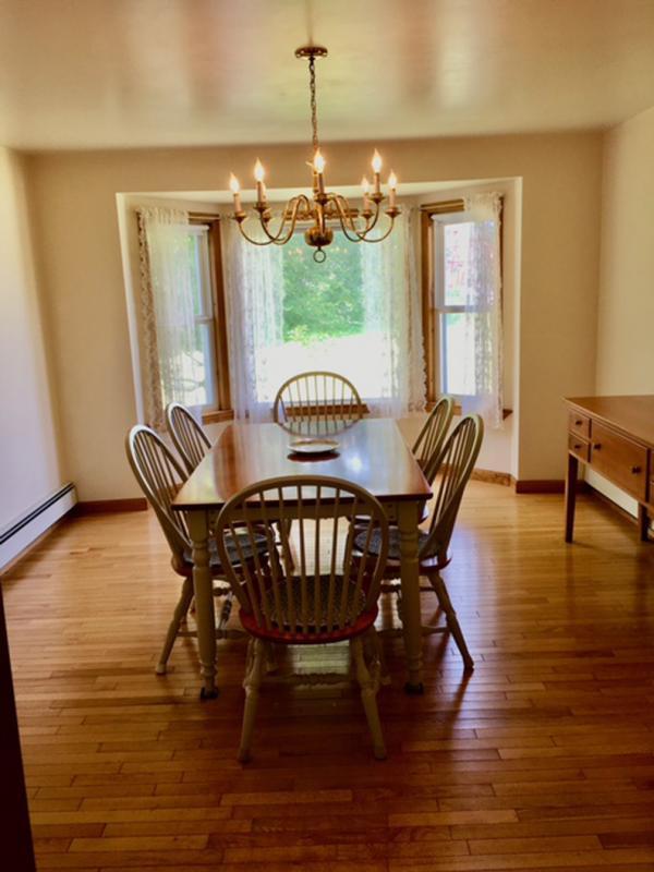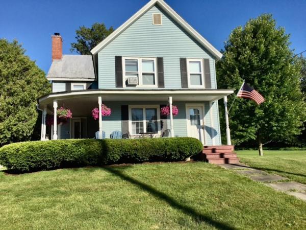 The home has 4 bedrooms, spacious kitchen/mud room, dining room, cozy living room with fireplace/woodstove,family room, bathrooms with one recently remodeled, hardwood floors and ceramic tile , garage,large front wrap around porch with view of the park. First floor has 1 bedroom,kitchen/mud room,dining room,living room, family room, and bathroom. Second floor has 3 bedrooms, bathroom, kitchen/craft room, office, and storage room.